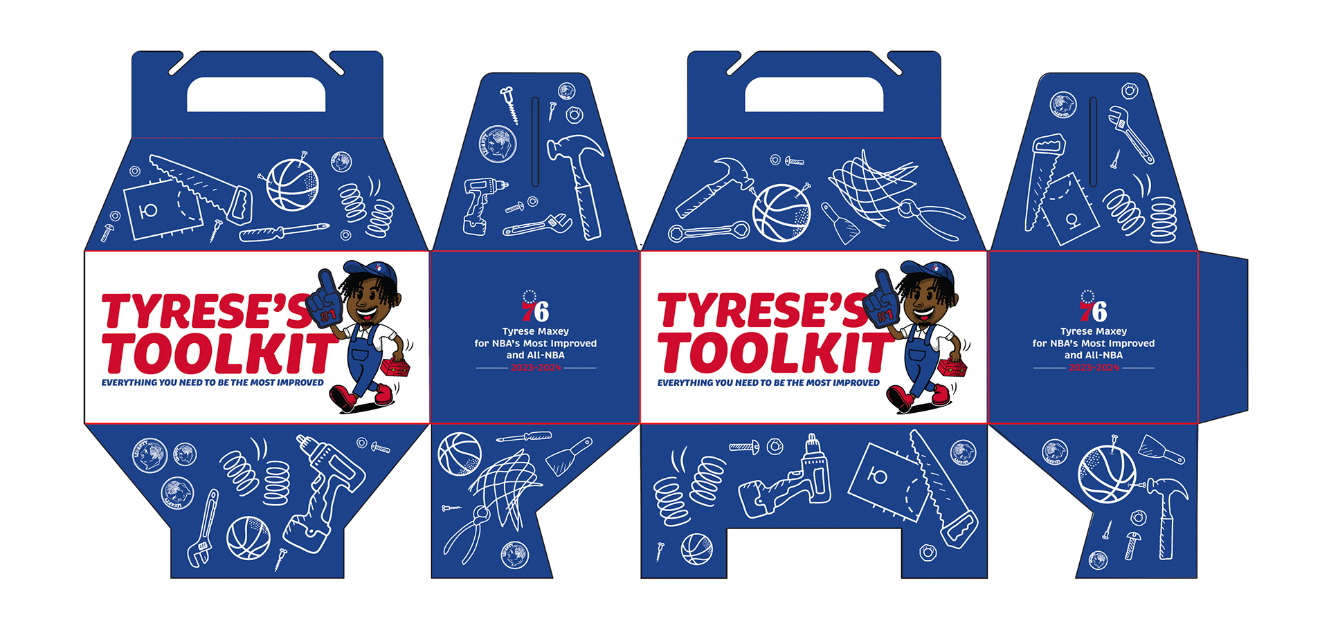 To help rising star Tyrese Maxey win most improved for the 2024 season I had ideated, designed, and developed a Tyrese Maxey Most Improved Tool Kit for the NBA and media members. This toolkit is custom illustrated by me and packaged together holding the tools you need to succeed in order to be most improved. This kit was the final push Tyrese needed before he was named Kias 2024 Most Improved recipient.